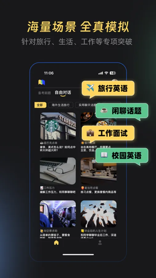 MojoHi Speaking is an app that allows users to practice their English speaking skills by having conversations with partners in various real-life scenarios. The app offers a range of features such as translation and grammar check to enhance the user experience and make the learning process more enjoyable.