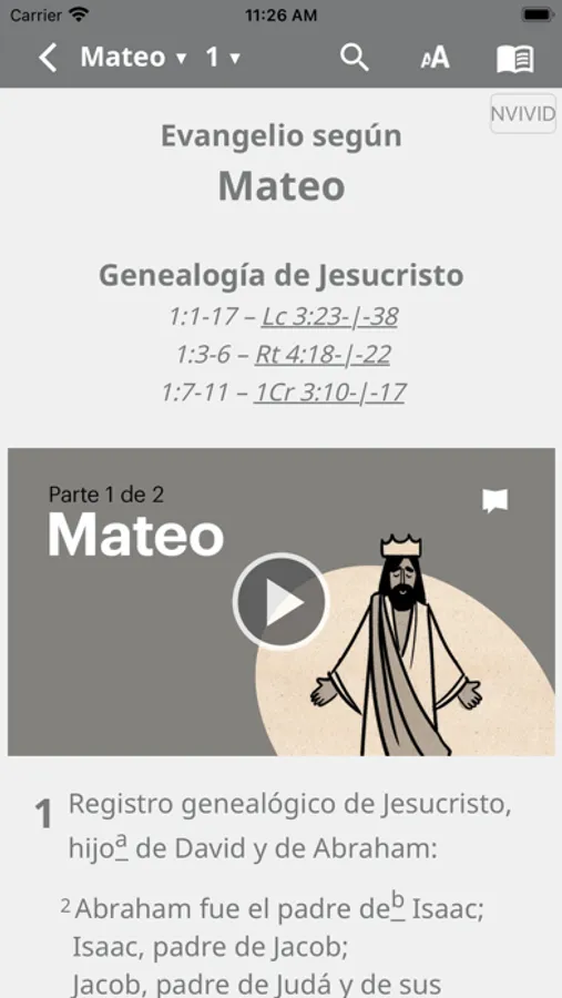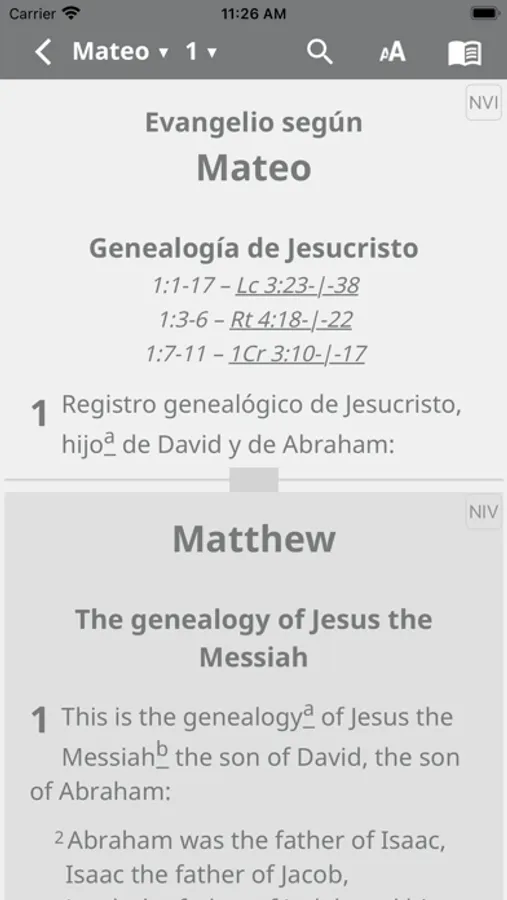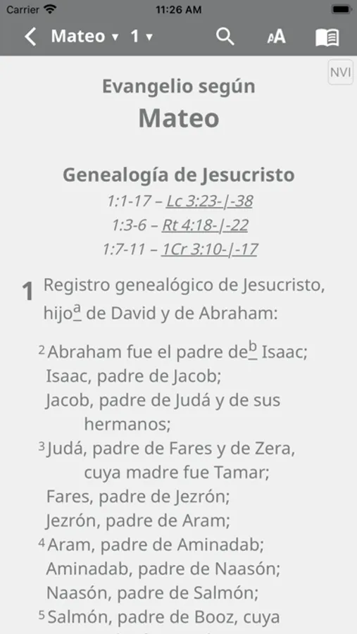 Fácil navegación por la Biblia con un tamaño de texto ajustable.