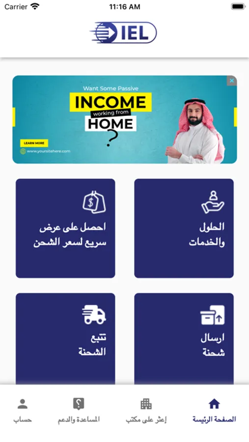 من خلال هذا التطبيق يمكن لزبائن دولية للشحن متابعة وارسال الشحنات.