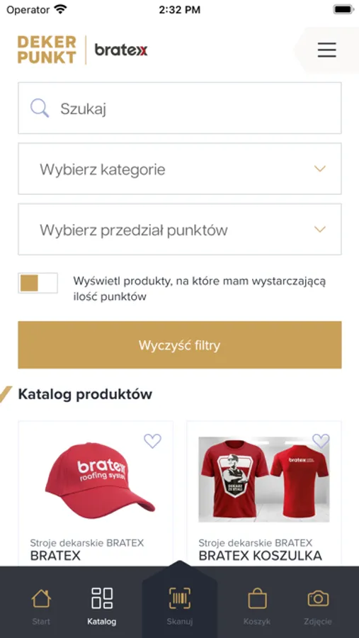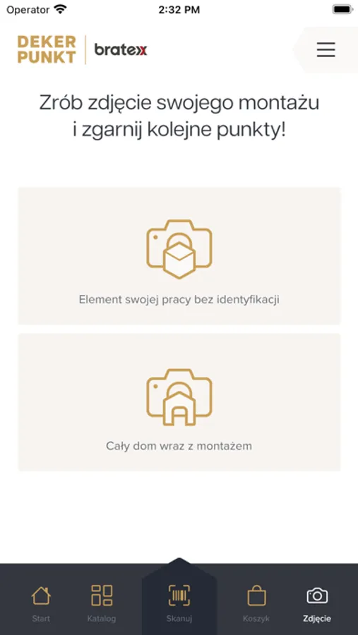 Aplikacja Deker Punkt stworzona jest dla dekarzy i umożliwia zbieranie punktów programu lojalnościowego. Zbieranie odbywa się poprzez skanowanie kodów QR lub ręczne wpisanie unikalnych kodów z kuponów, które umieszczane są na większości wyrobów marki Bratex.
