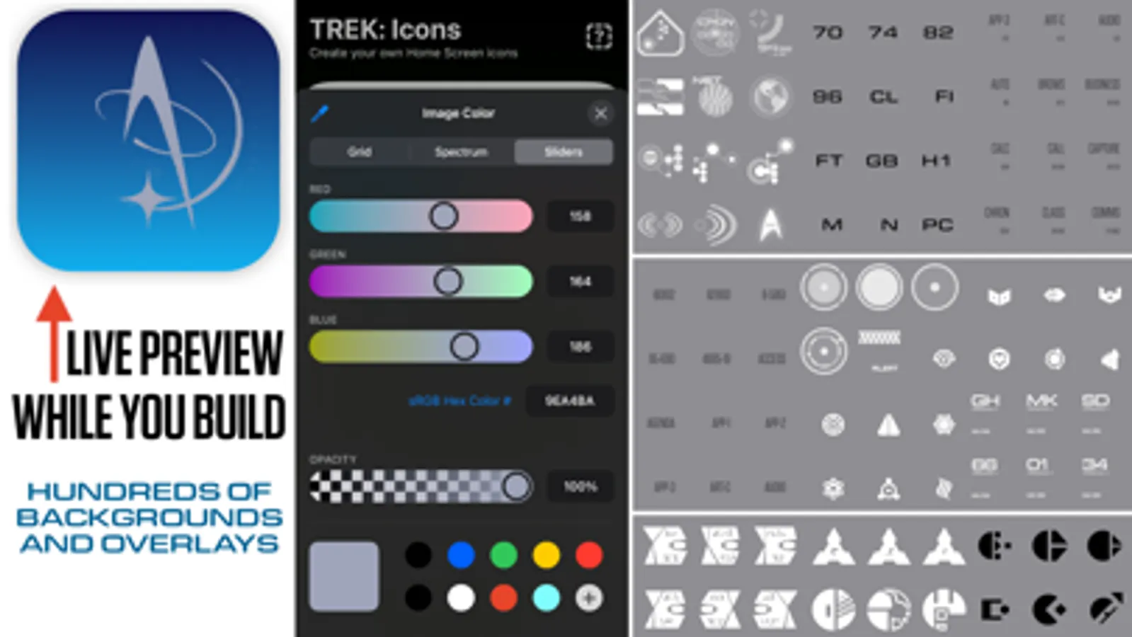 Create icons for your Home Screen in many TREK styles to make your iPhone or iPad look like a device from the future.