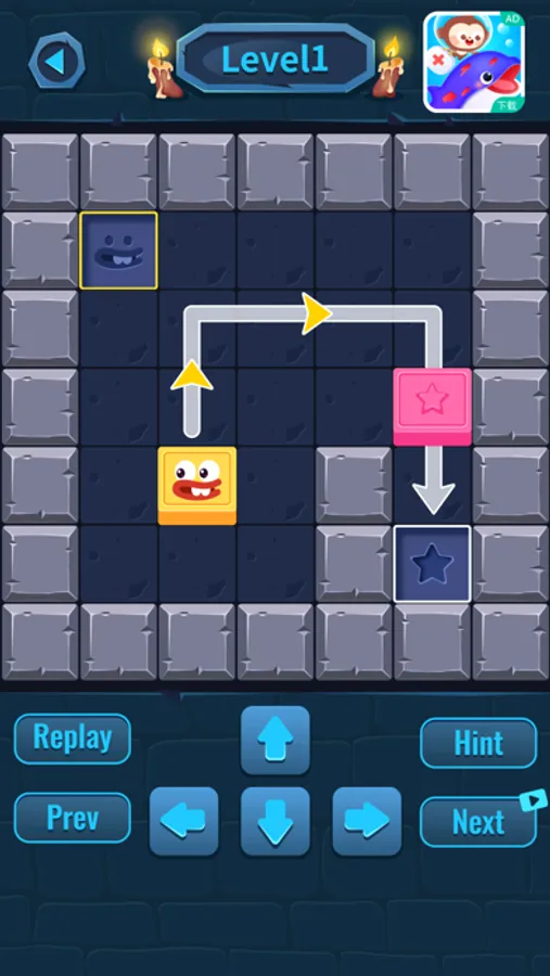 Move the yellow smiley face box through the upper, lower left and right direction buttons. If the operation is wrong, you can choose to withdraw or play again;