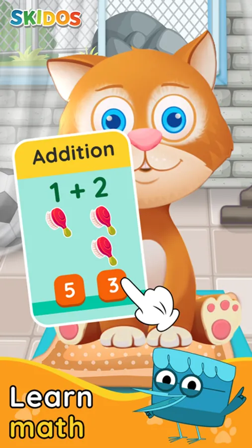 MATH: Our math exercises cover a comprehensive list of topics including number sense, addition, subtraction, multiplication, division, geometry, etc. Tasks evolve as a child progresses. Interactive design and animation support learning - three cute little SKIDOS mascots help and encourage kids when they work on the assignments.