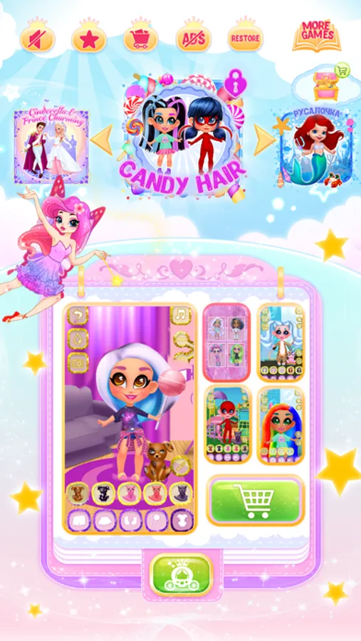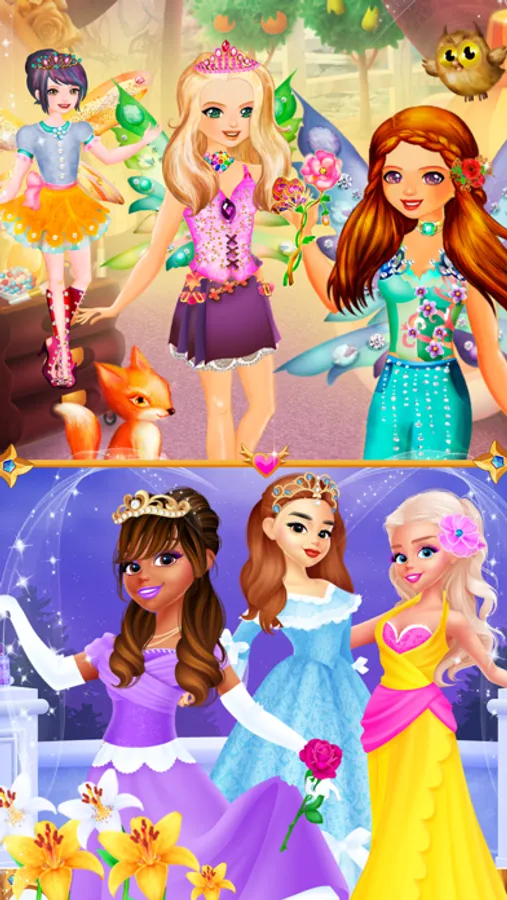All girls and kids love fairy tales. In our magic makeover dress up games for girls you can choose outfits for cute fantasy pixies, dolls, mermaids or even princess Cinderella. There are nice dresses, shoes, wings, hairstyles and accessories.