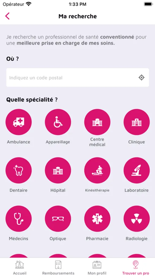 > Géolocaliser des professionnels de santé (opticiens, dentistes, radiologues...) avec lesquels nous avons des accords de tiers payant