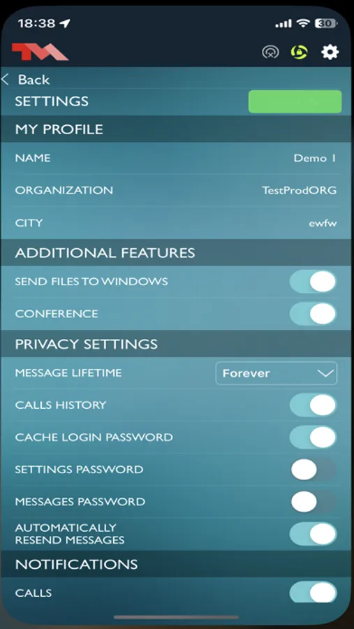 With Trust4Mobile Enterprise, your privacy always comes first by giving you full control over its functionalities and security features. You are able to decide whether the application saves the call history or not, if it stores (in encrypted format) the messages and documents you receive or the lifetime for a message stored locally. Additionally, you can create and manage your own encrypted conference sessions.