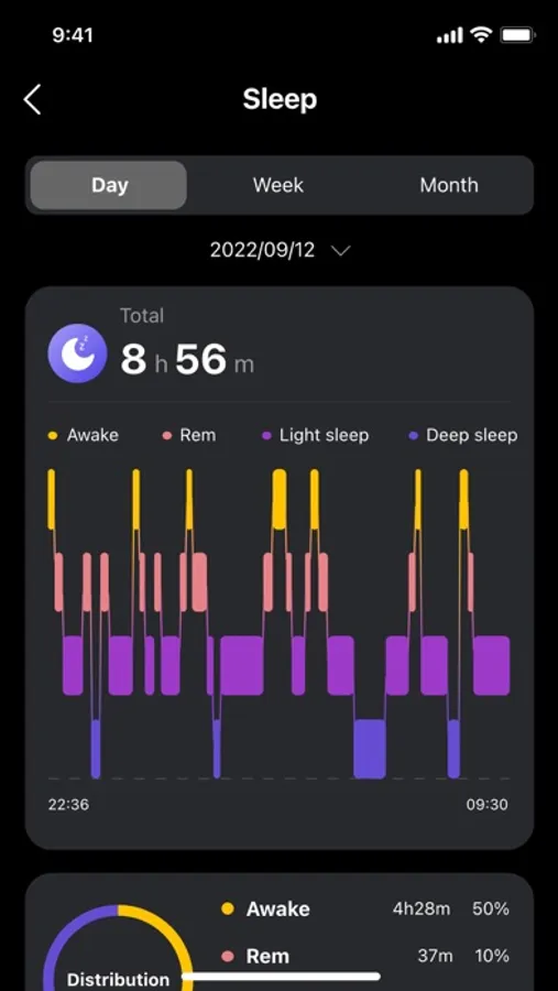 The APP keeps records in sleep monitoring through smart watch; divides different sleep stages; evaluates sleep quality; heart rate monitoring, all-day pressure monitoring.