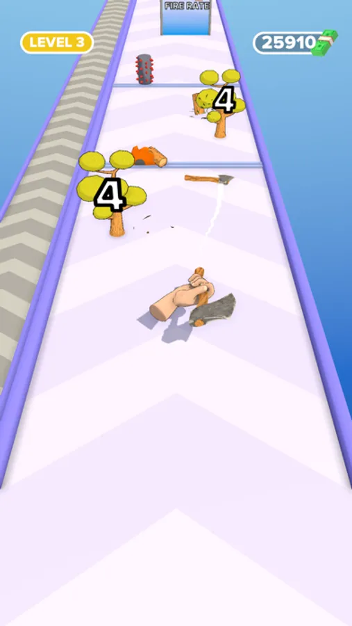 Your goal is to collect as much wood as possible by throwing your trusty axe at trees, and then use it to build amazing structures. Each level is filled with challenging obstacles and unique terrain, making every playthrough feel fresh and exciting. Along the way, you'll encounter gates that can boost your axe's abilities, such as increasing its fire rate, range, or damage. Make sure to hit these gates to upgrade your axe and gain an edge in the game.