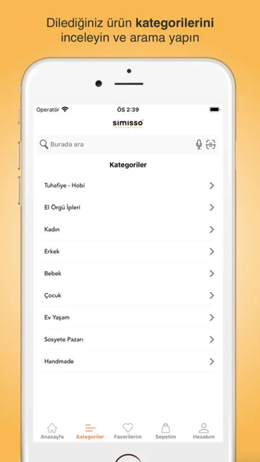Hızlı ve güvenli alışveriş fırsatlarından yararlanmak istiyorsanız mobil uygulamamız tam size göre. Siz de Simisso’nun sayısız ürün ve avantajlarıyla konforlu alışverişi çok seveceksiniz!