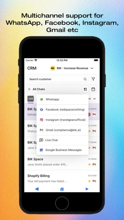 Be present on multiple channel for your customer. Provide support to your customers who reach out to you via WhatsApp, Email, Facebook, Instagram, Livechat. Customer can reach out to you on any of the above channels for support/sales related queries.