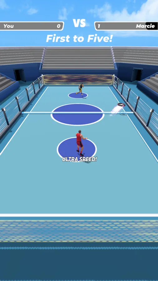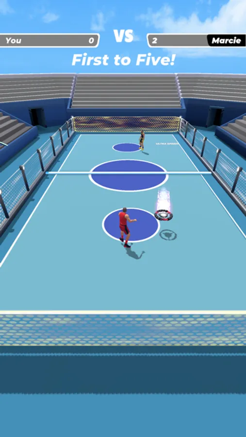 Make the disc bounce and score goals in the opposite site of the court - how fast can you swipe and how well can you block?
