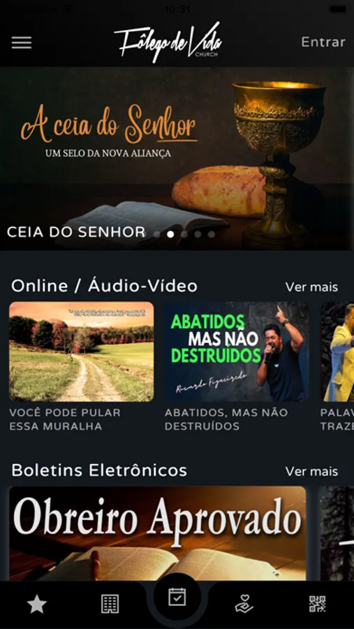 * Conteúdos (Áudio/Vídeo): Permite visualizar e ouvir os conteúdos da Igreja disponíveis no App;