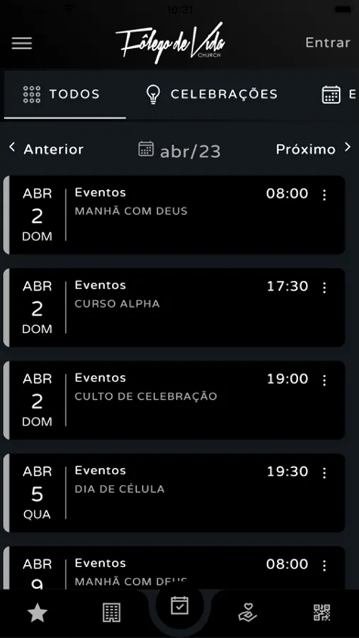 Através do App você pode realizar várias atividades para se relacionar com a Igreja, como: