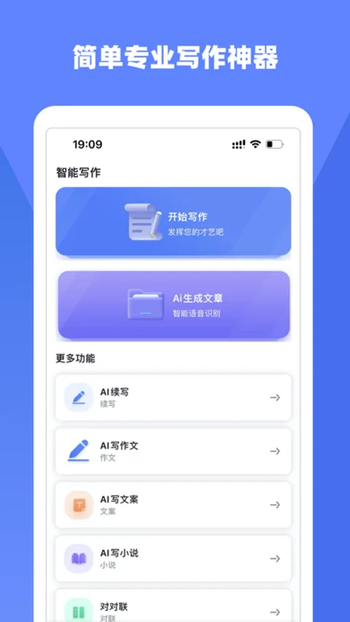 目前新增对文章、文案、小说、论文、检讨书、周报、诗词等文体的一键写作功能,快来尝试吧!