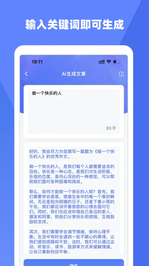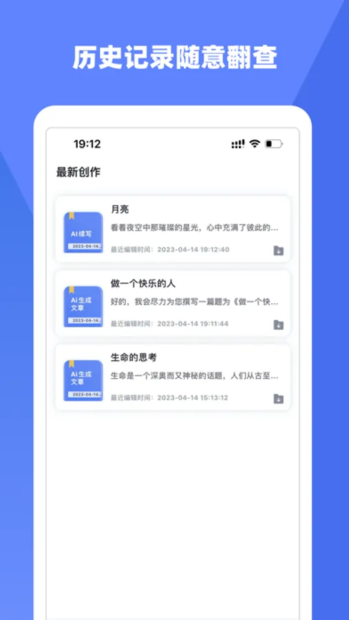 我们是一款轻松上手、稳定可靠的写作应用,自带一键生成作文、作文续写功能,可根据少量开头文字来生成后续内容,适用于散文、公文、小说、文言文、情诗等文章的写作。 我们还支持语法错别字检测、违规文本检测、中英文本快速翻译、文本相似度对比等功能!