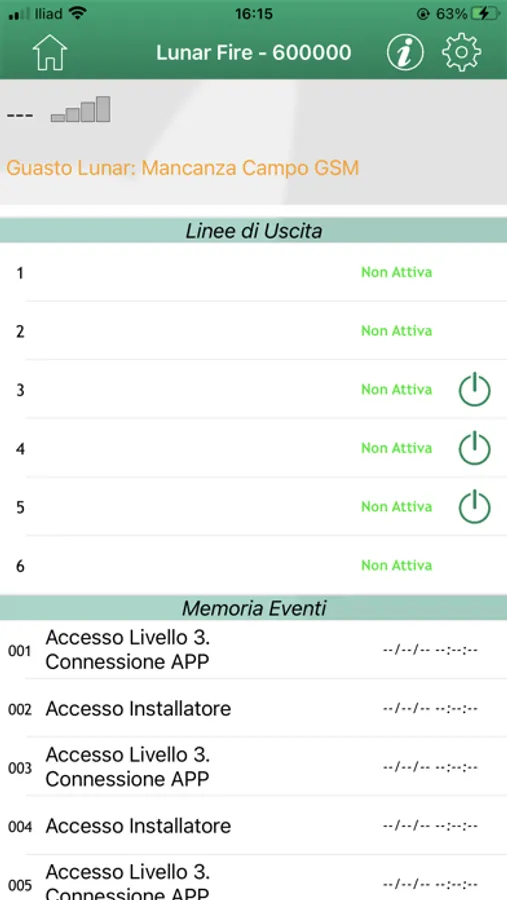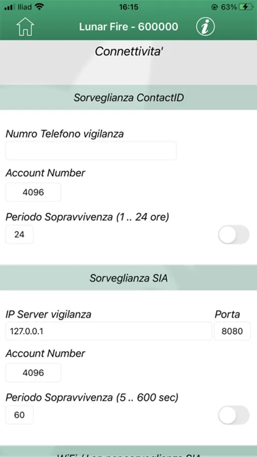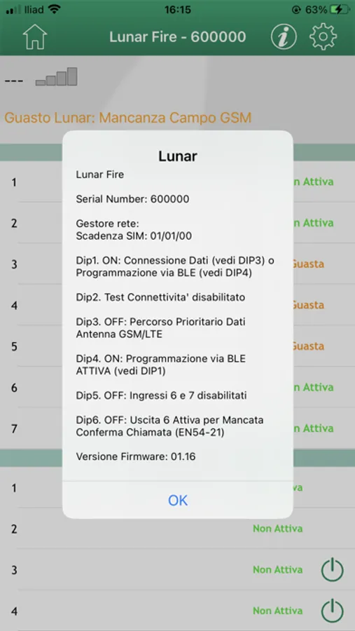 App Bluetooth per uso e programmazione del combinatore telefonico 4G WolfLunarFire, certificato EN54-21 per sistemi antincendio; predisposto per comunicare con sistemi di vigilanza attraverso i protocolli ContactID e SIA-IP DC09