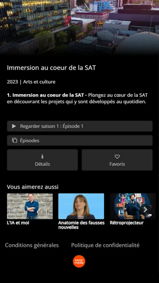 Qu’elle emprunte la forme de dossiers, de magazines, de débats, de documentaires ou de capsules exclusives, la programmation de Savoir média propose un extraordinaire catalogue de près de 2500 contenus. Cette offre se compose de productions originales québécoises qui donnent la parole à des expert.e.s reconnu.e.s, de grandes séries internationales, mais aussi d’articles et de balados spécialement sélectionnés pour enrichir votre expérience sur le web.