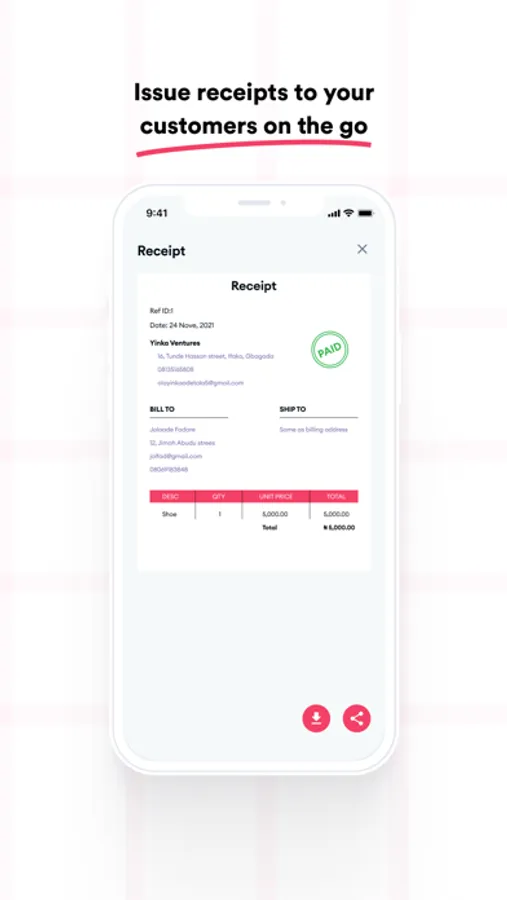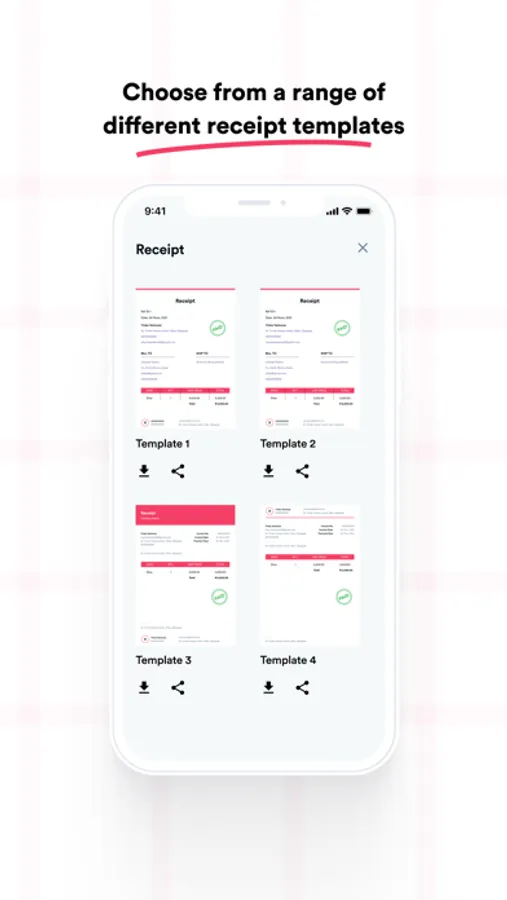 • View and regenerate all of your previous receipts and invoices in one easy place