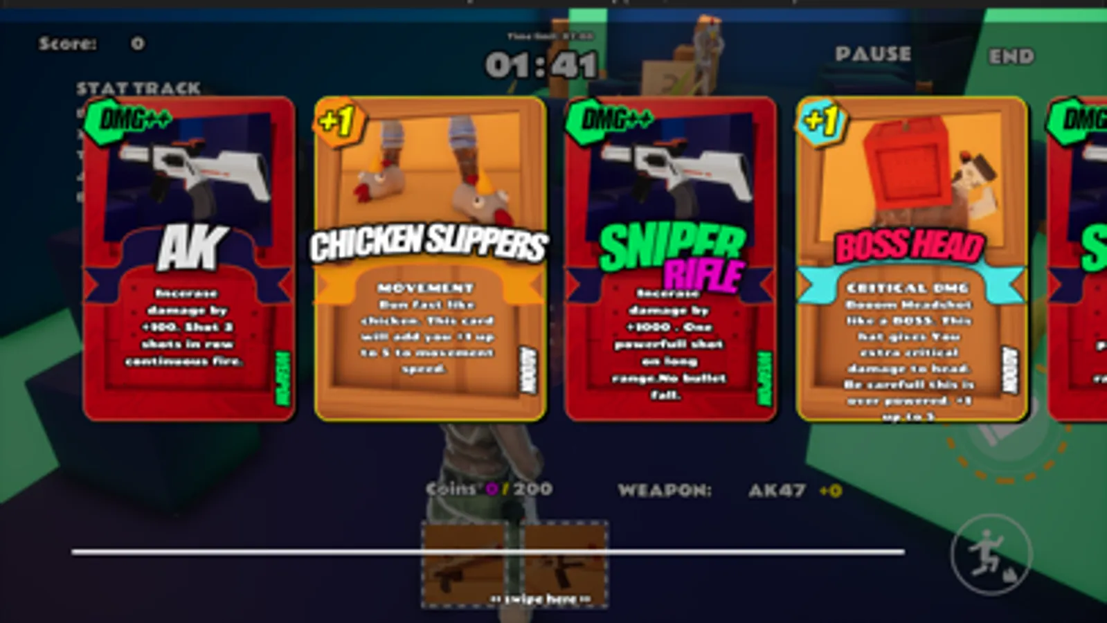 Your goal is to survive in the arena for 7 minutes while upgrading your weapons and unlocking skins dropped by the boss. The game is very challenging, similar to the Souls games, so be prepared for intense combat.