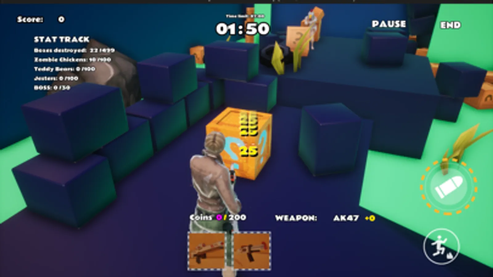 Hello and welcome to Chicken Zombie Third Person Shooter Offline Arena in Cartoon Style! This game combines action, survival, and third-person shooting as you fight against zombie chickens, teddy bear jesters, and a boss.