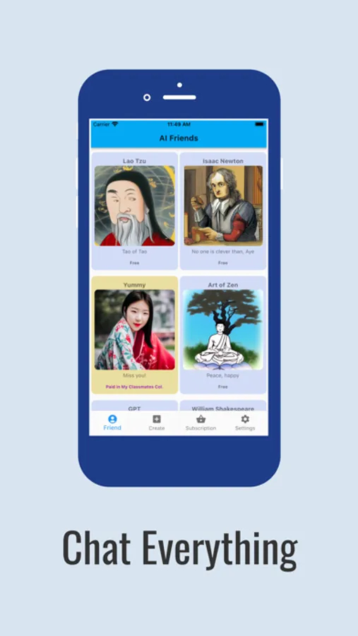 Create and chat with various AI built girls, friends, heroes, scientists. Voice clone. Photo/Video generation.