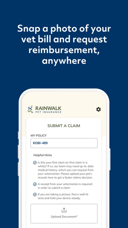Snap a photo of your vet bill and submit requests for vet bill reimbursements