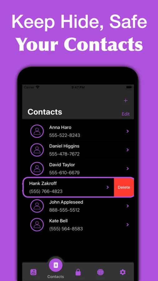 - Keep Safe & Secure Contacts with Passcode / FaceID / Touch ID.