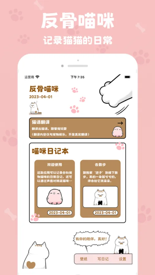 -Meow Diary: Record the daily to-do of Meow, leaving behind cute moments of Meow.