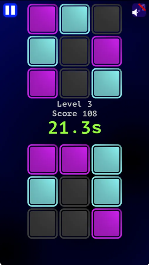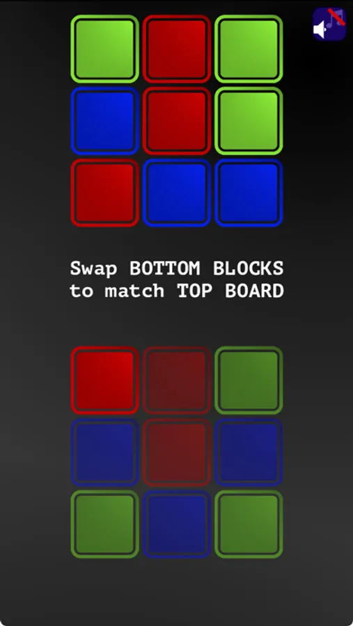 A simple and addictive puzzle game, Simple Swaps challenges you to swap blocks on the bottom board to match the pattern of the top board. Simple! But the timer is counting down, and when time runs out it's Game Over! Each matched puzzle increases the difficulty and grants bonus time. How many points can you score? How many levels can you match? Get swapping!