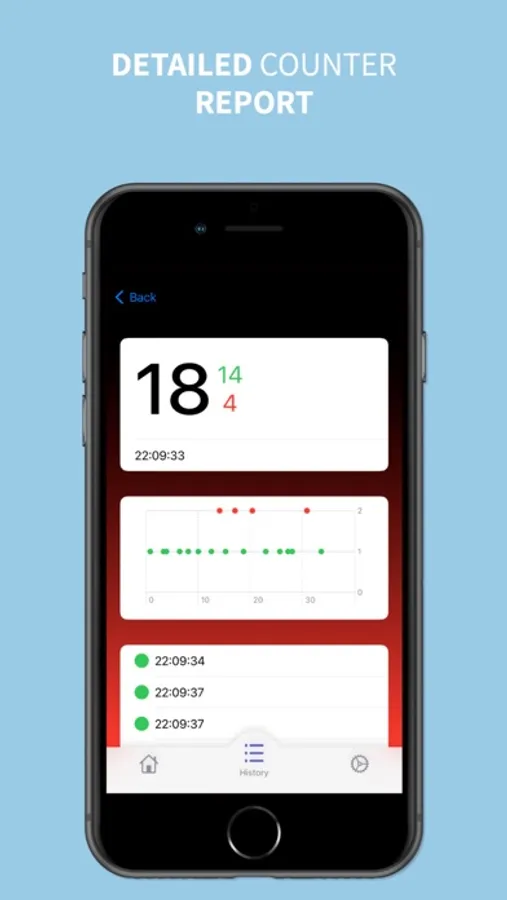 Tha app saves results so you can return later. There is also a chart to visualise taps in time.