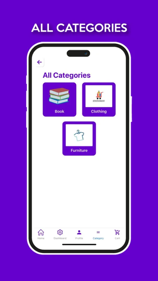 BUY items that show up on your feed or when you click on one of the 3 specific categories: clothing, furniture, and books.