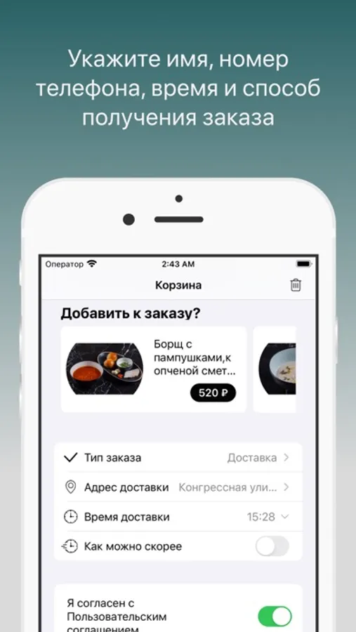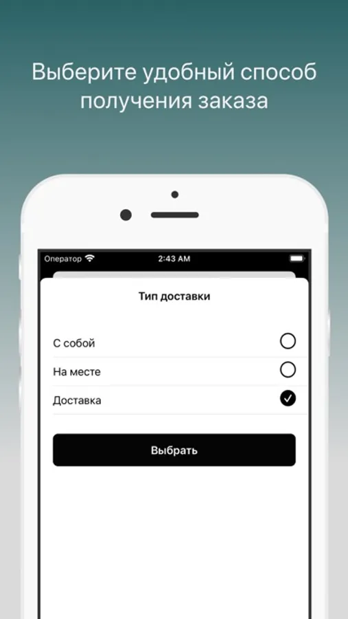Укажите время, когда хотите прийти за своим заказом или выберите доставку с указанием времени и адреса доставки.