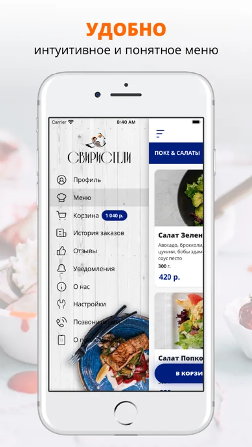 Приложение Свиристели — еда с доставкой на дом, поке, закуски, пицца и напитки от фанагории.