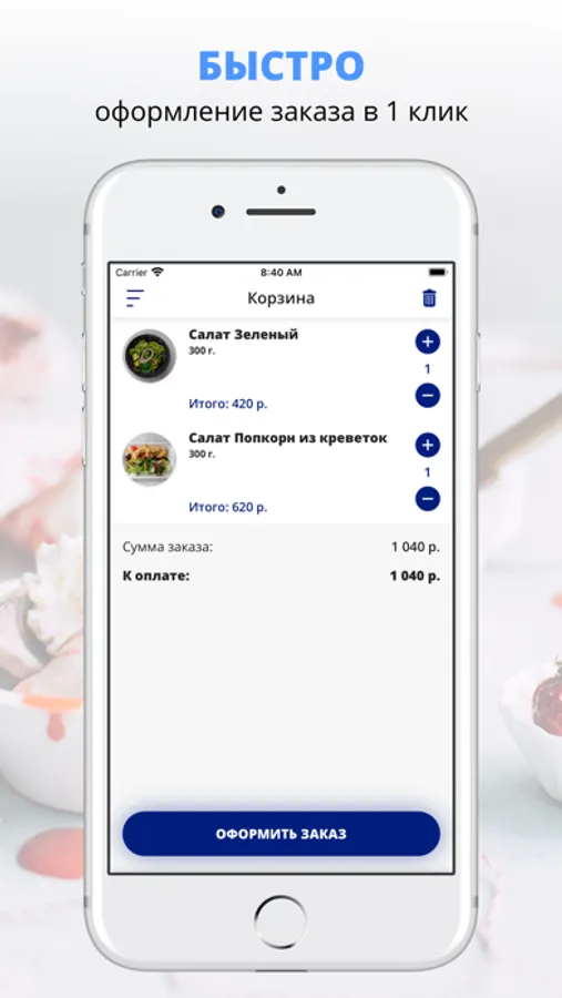 удобная корзина и быстрое оформление заказа,