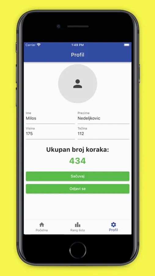 Ova mobilna aplikacija omogućava korisnicima da prate svoje korake i pratiti svoj napredak kroz autentifikacijski sistem koji omogućava jednostavno upravljanje korisničkim podacima. Uz rang listu, korisnici mogu videti gde stoje u odnosu na druge korisnike. Svi podaci se sigurno čuvaju i mogu se pregledati i analizirati kako bi se poboljšao kvalitet života i povećala aktivnost.