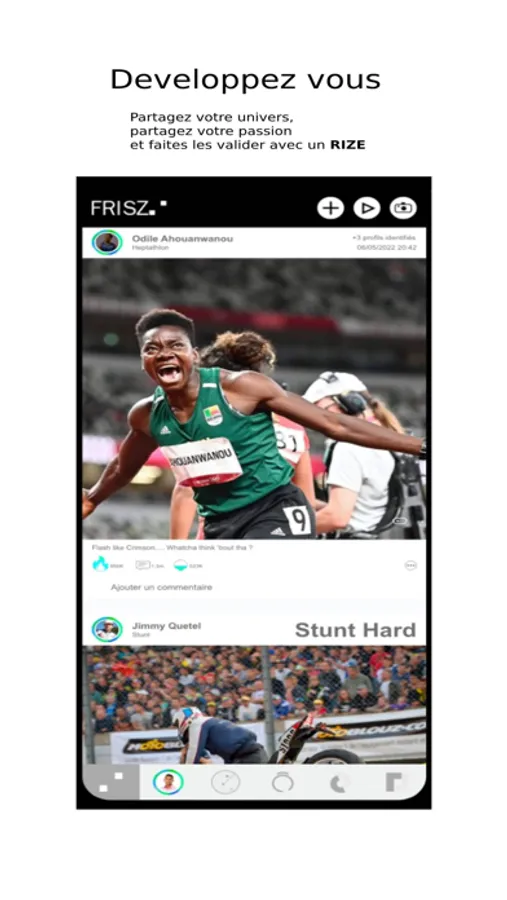 - Suivez l’actualité sportive des membres et encouragez-les avec un RIZE, allez beaucoup plus loin en les propulsant avec un ARIZE.
