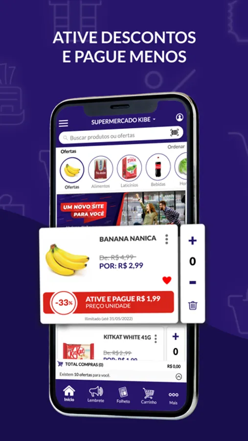 Viu quantas vantagens? Comece a aproveitar tudo isso, fazendo o download gratuito do aplicativo Kibe Supermercado