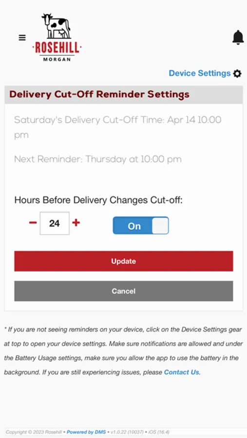 You can also set a reminder to update your order before your delivery and edit your account information including email, phone numbers, and payment information.
