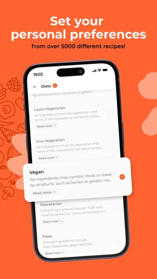 Set your personal preferences, such as diets, intolerances and cuisines.