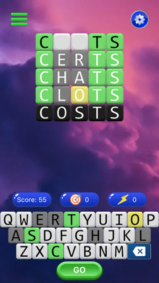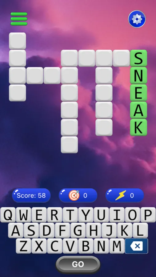 A crossword puzzle game where you can solve for words and use strategy in the word order and when to use bonuses. Players can also challenge friends or other random players online.