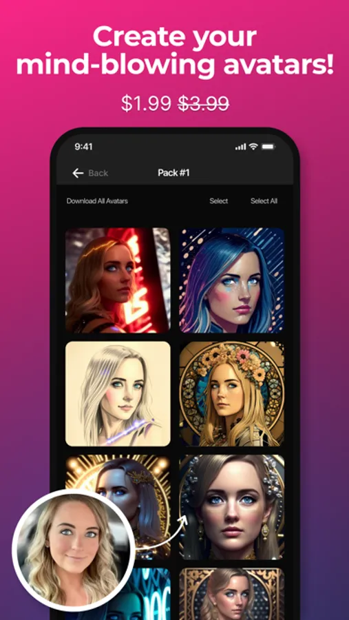 Introducing our groundbreaking and user-friendly application that allows you to effortlessly generate AI avatars that are unique, stunning, and guaranteed to look like you. At Ascendant Art, we have developed an exclusive and innovative technique that utilizes a comprehensive face scan to accurately capture your distinct appearance. Our advanced Artificial Intelligence algorithm then collaborates with a range of talented artists to create customized avatars in a multitude of artistic styles. As a result, you can enjoy a truly unique and personalized avatar experience.