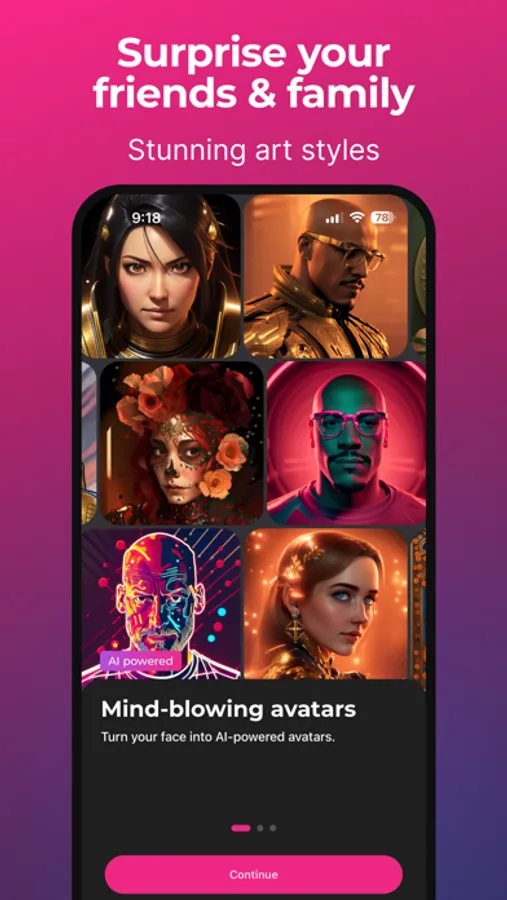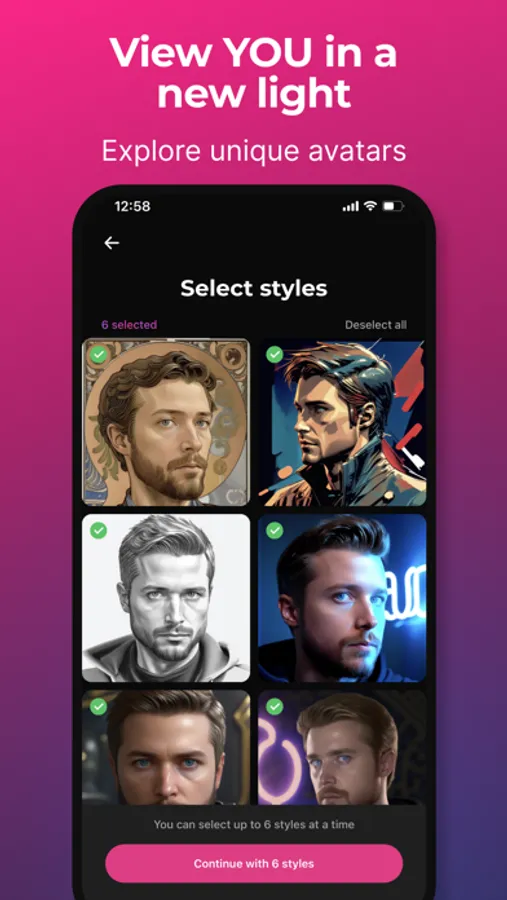 Using our app is a breeze. Upon launching the application, you will be prompted to take six selfies from varying angles, ensuring a thorough and precise representation of your facial features to ensure your AI avatars look like you. Next, you will have the opportunity to browse through our extensive collection of avatar themes, handpicked from an array of gifted artists who have graciously provided consent for their work to be featured. Once you have made your selections, our state-of-the-art supercomputers will meticulously analyze your facial characteristics and leverage cutting-edge AI algorithms to generate remarkably accurate AI avatars in the style of your chosen artists.