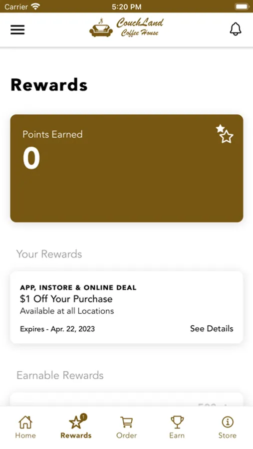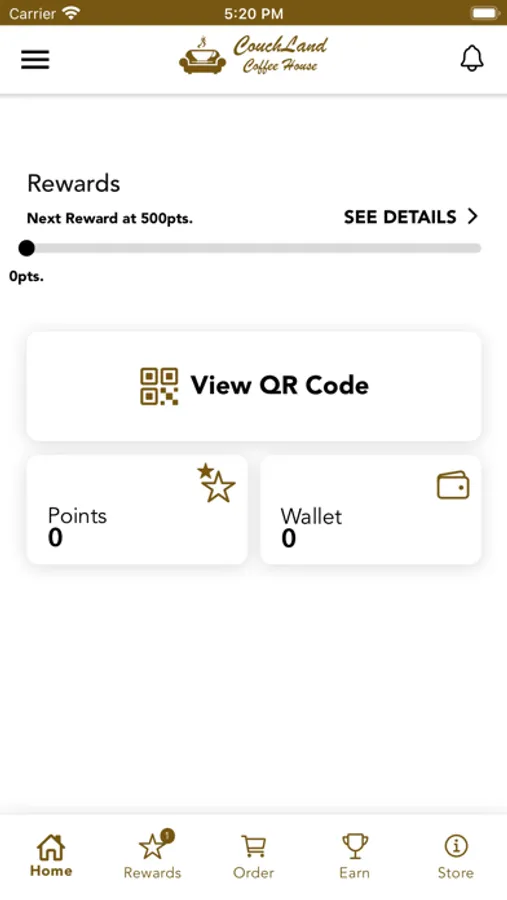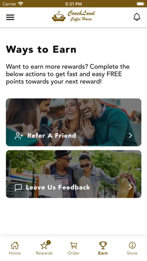 CouchLand Coffee House App - Earn and track your rewards at participating stores