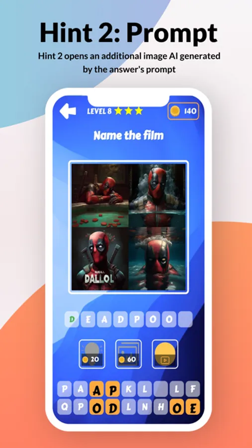 Guessing the AI generated images you will progress through the game and receive not more than 3 stars. One star - 10 coins. For wrong answers you will lose a star.