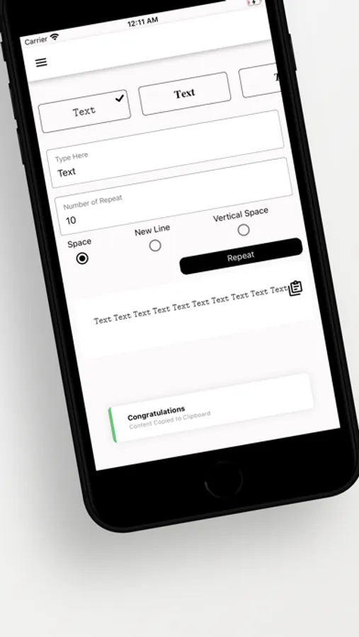 By using this application you can send the same message at multiple times.  It is one kind of message repeater to send message repeatedly, and also you can set your repetition limit with new line text repetition. Using this app you can also make repeated letters using alphabet characters. Very easy to use and required few click for your message repetitions. Repetition process works asynchronously for longer repetition limits.