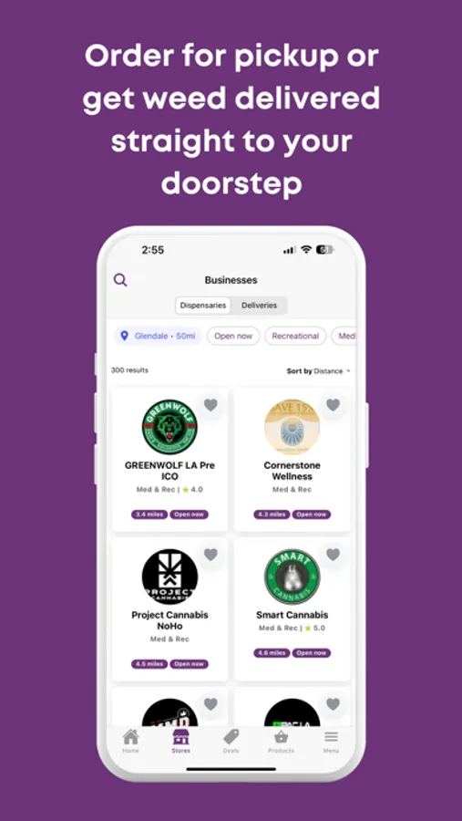 - Discover dispensaries & delivery services near you, and place an order directly through our app. You can find a business that fits your needs by using our filtering techniques.