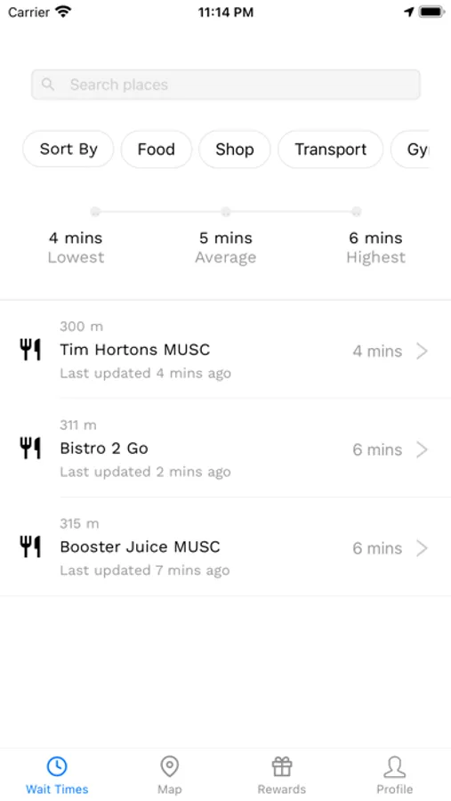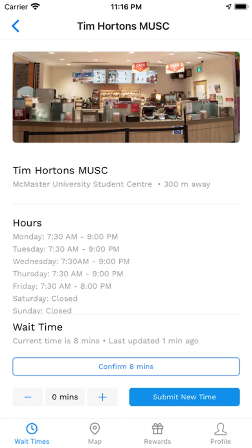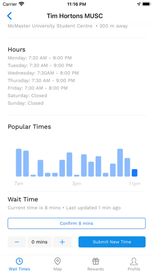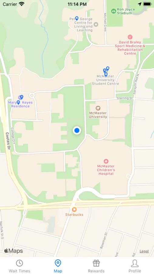 QTime provides accurate estimates of wait times and occupancy of services and facilities on the McMaster University campus. Check the wait time for Tim Hortons, Booster Juice, and more. See which library is most crowded and when the gym is least busy. Use the bird's eye view to see all locations of interest on campus tracked by QTime. Provide your own estimates to help out fellow students or confirm the estimate computed by QTime. Earn reward points while using the app or submitting estimates. Refer others to QTime for even more rewards. Manage your profile, change color schemes, or suggest new locations on campus.