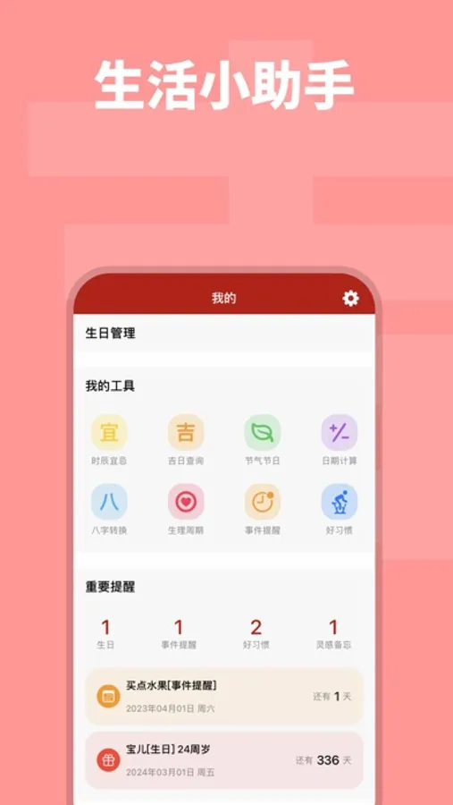 华夏炎黄子孙必备的日历,这不仅仅是日历,生辰八字、命运排盘、生日提醒、日期换算...