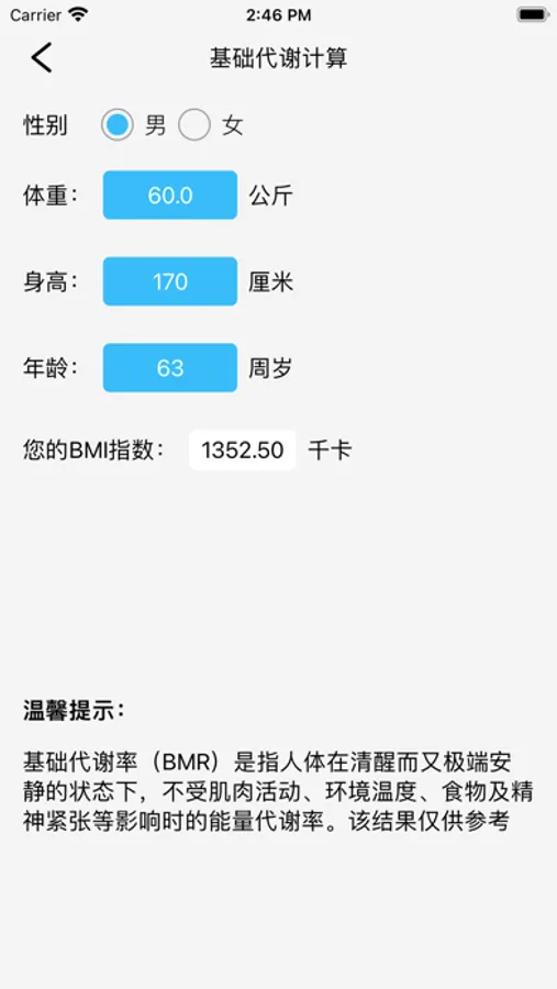 BMR公式计算参考https://en.wikipedia.org/wiki/Basal_metabolic_rate