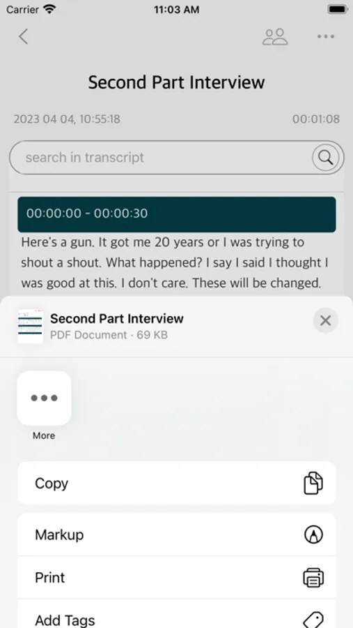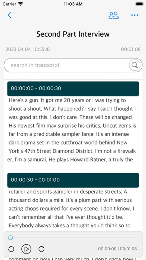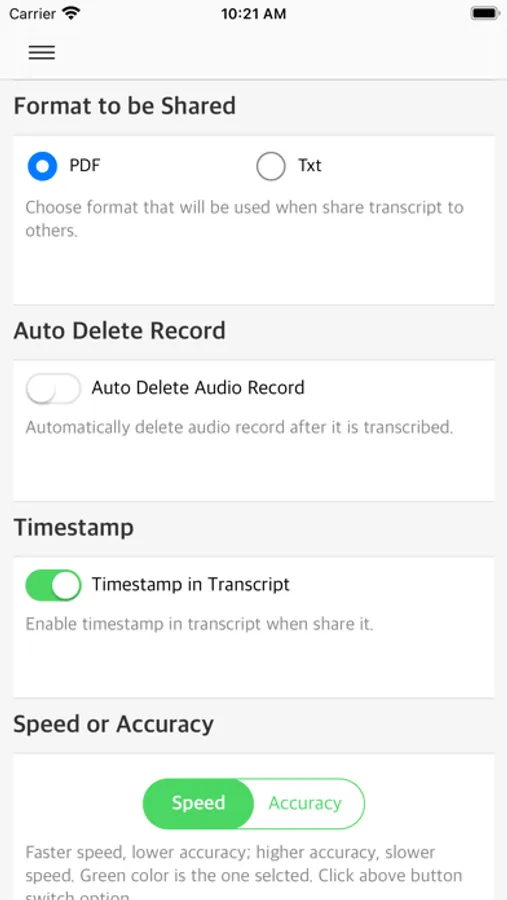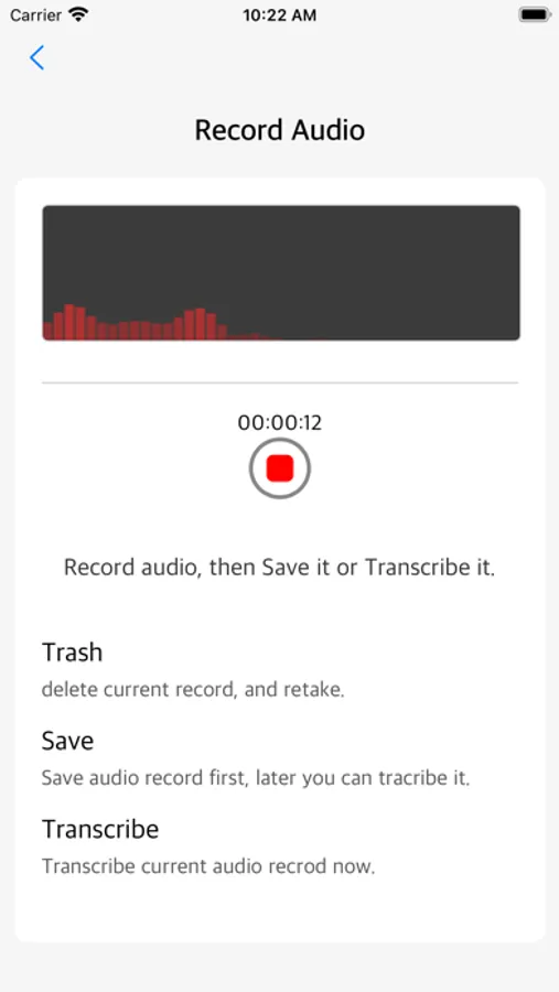 - transcribe audio/video file in local library, iCloud and Camera roll